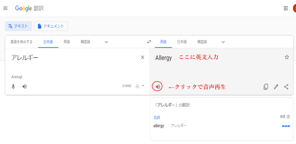 音声ファイルで実際の発音を確認しておくと、自分の英語発音を練習できるだけでなく、相手の発言を聞き取る時にも絶対に役に立ちます。英単語をネイティブ音声なしで覚えると、脳内で間違ったカタカナに変換されてしまうことがあります。その状態で「よし完璧!」と望むと、実際は全然聞き取れなくて落ち込む…だけならいいですが、アレルギー情報については本当に困った事態になる可能性があります。