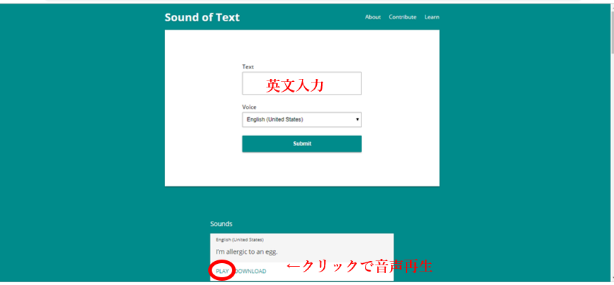 ・下のSoundsの枠内、左下のPLAYクリックで音声再生